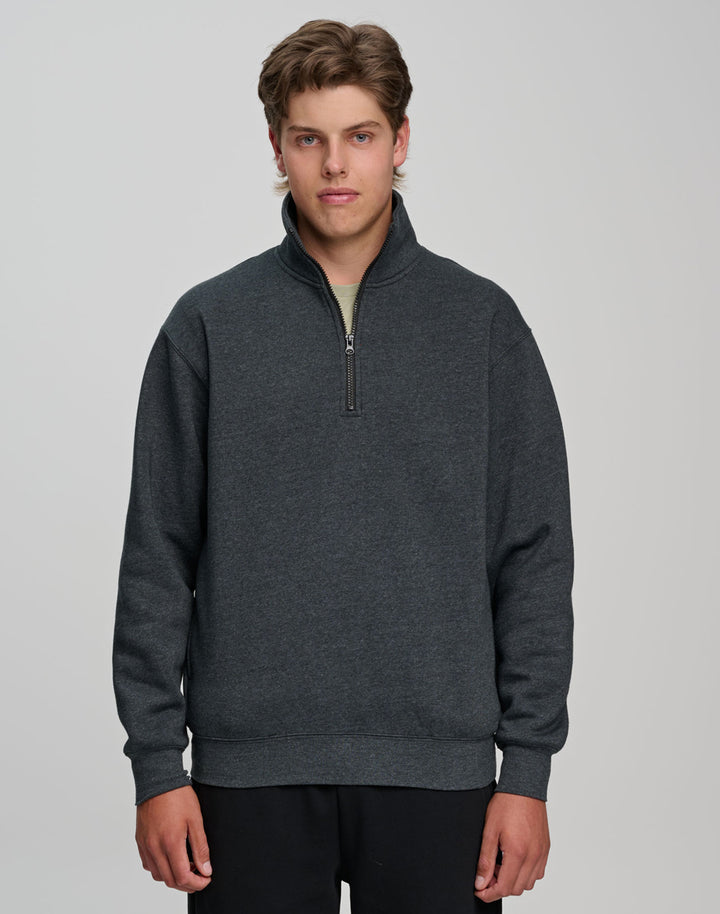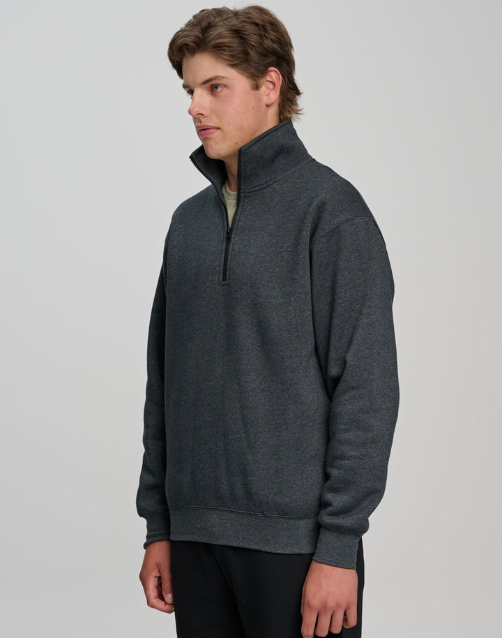 Description: A traditional fleecy sweat, self fabric collar with half front zip.